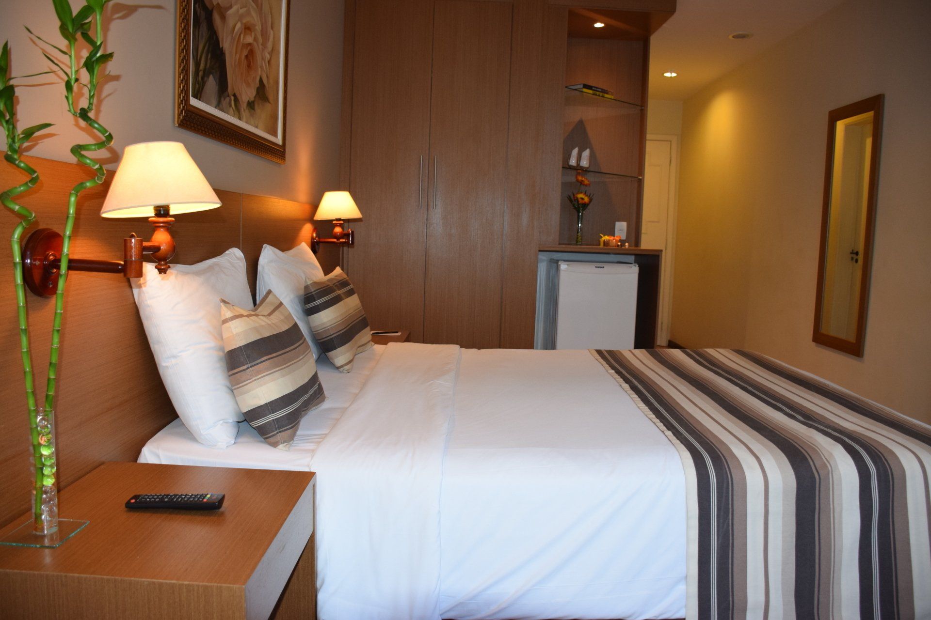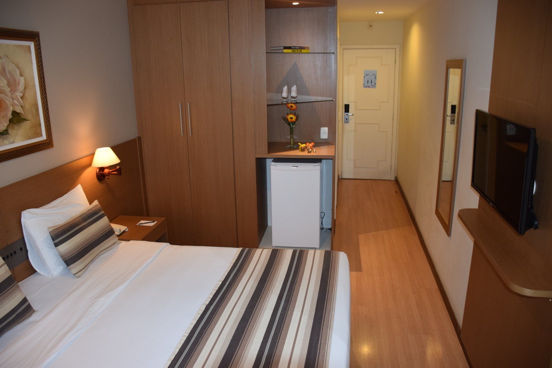 Com vista para a rua e para a cidade, este quarto de 20 m² dispõe de uma cama de casal e acesso Wi-Fi gratuito, TV de tela plana com canais a cabo, ar-condicionado e frigobar.