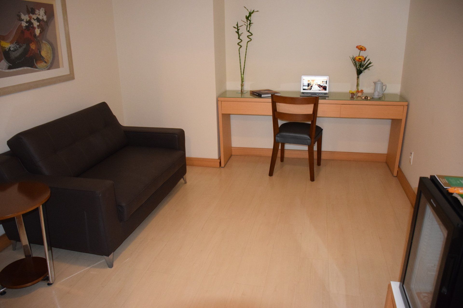 Maior do que o nosso quarto standard, a Suíte de 30 m² possui uma sala de estar com sofá e mesa de trabalho. Também oferece vista da floresta ou da cidade, com cama de casal, ar-condicionado, secador de cabelo, kit de banho, TV de tela plana a cabo de 32 "e WiFi gratuito.